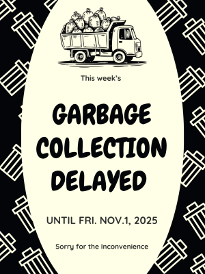 Garbage Collection Delayed until Fri. Nov. 1, 2025